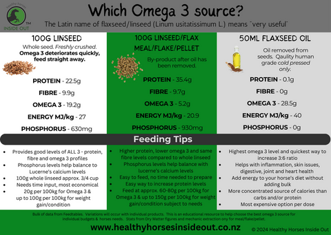 A small number of horses do not react well to Linseed, and if you have an active case of ulcers, it is suggested to stick to cold pressed flaxseed oil or temporarily remove until resolved. Chia is a good alternative for its omega 3 vs 6 balance and can be fed at double the recommended amounts of linseed. Linseed is safe for metabolic and laminitic horses, with a low starch and sugar profile and is a particularly important inclusion to a hay majority/only diet.