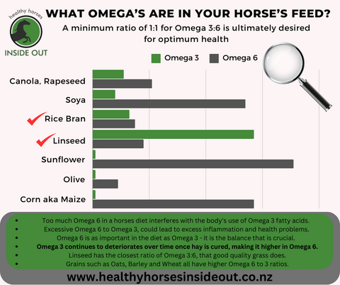 Horses diets typically are top heavy in Omega 6 as these feature abundantly in their diets, more so if feeding premixed feeds and not on good quality grass.