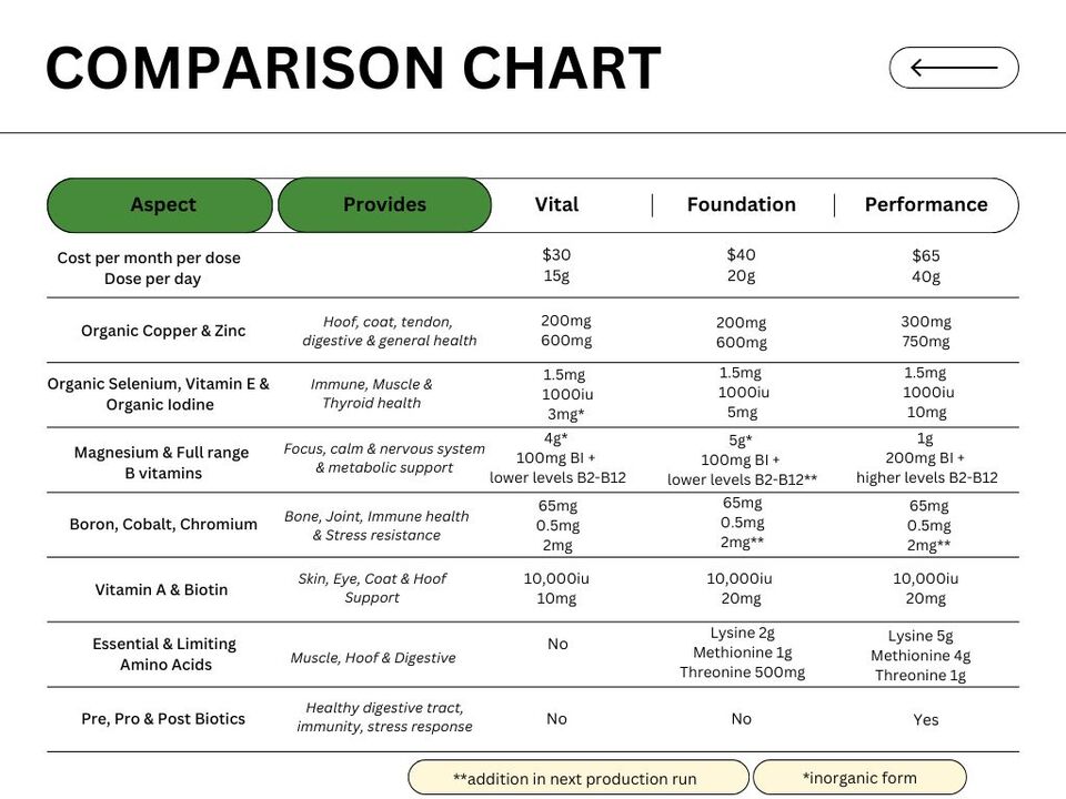 ★★★★★Another goodieI’ve been a HHIO lover for awhile now and was keen to give vital a crack for my older TB who is mostly a good doer. This winter I’ve seen an improvement in his overall condition, since using vital but I think the biggest testament was how quickly he healed from a reasonably serious injury. I’m sure the good quality supps had something to do with his speedy recovery and maintaining his condition if not improved condition.
